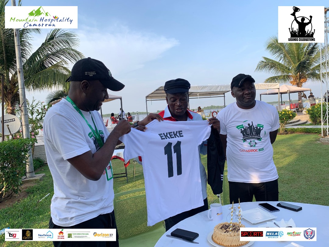 A 16 heures passés quelqu’un court « réveiller » le champion d’Afrique 1988 qui s’offre une sieste dans sa résidence attenante à l’espace touristique. La vedette du jour arrive. Vêtu d’une chemise blanche, d’un short noir et de sandales, il salue ses hôtes. Yannick Tankeu lui remet un maillot blanc portant son nom le numéro 11 au dos. Puis toit le monde s’installe autour d’une des tables qui autorisent une magnifique vue du fleuve Wouri. C’est parti pour un échange au cours duquel celui qui a 65 ans en ce jour dit tout sur sa reconversion.